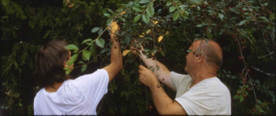 Le titre d’abord. Les cerises. Fruit printanier à la saveur unique, et prétexte à l’intrigue de ce troisième film court en solo de Vytautas Katkus. Une parenthèse bucolique entre un père et un fils, au moment de la retraite toute fraîche du premier. L’aîné a convié son fiston à venir cueillir les drupes rouges du jardin. L’occasion d’un moment partagé, entre évocations du passé et rapprochement parfois silencieux. Les mots sont aussi importants que les gestes, tout comme les rires et les regards. Et surtout, les deux personnages sont incarnés par le réalisateur et son propre paternel, Viktoras Katkus. Mais la proposition de cinéma reste décalée, car la visée n’est pas le documentaire, qui saisirait un morceau de réel en mode reportage ou intrusion familiale. L’aventure convoque le réalisme tangible au départ, pour finir dans la poésie surréaliste. Et légère, légère. Avec, comme cadre chaud, l’été, libéré des contraintes du reste de l’année, et dans lequel la fiction peut s’épanouir en douceur.