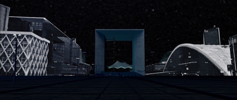 Pacific Club n’est pourtant pas un documentaire proprement dit. Il repose sur la déformation de l’espace filmique : de schémas architecturaux aux plans bleutés très composés du quartier d’affaires à la Défense, la mise en scène joue sur le dédale dont cet espace urbain est le point de départ. On songe aux premiers films de Jean-Jacques Beineix. L’impression qu’il donne est celui d’un étouffement en même temps que d’un vertige. Le cinéaste va même jusqu’à figurer un espace cosmique duquel émanent les témoignages écrits d’anciens clients du club. Le parking devient même, le temps d’une séquence, le laboratoire de formes chorégraphiques à la fois sublimes et déchirantes. De multiples façons d’évoquer non seulement l’oubli qui menace la remémoration, mais aussi l’existence de hiérarchies dans le travail de mémoire. En 1980 était publié un ouvrage majeur de Gilles Deleuze et Félix Guattari, Capitalisme et schizophrénie 2 : Mille plateaux. Les auteurs distinguaient en fin d’ouvrage l’espace lisse et l’espace strié. Le film de Valentin Noujaïm produit un troisième type, l’espace-méandre, où non seulement les êtres mais surtout les souvenirs s’avèrent nomades.