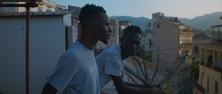Dennis et Ibra sont comme des frères. C’est souvent comme ça qu’ils s’apostrophent l’un l’autre, usant pour échanger soit de l’italien, soit de l’anglais. L’entremêlement linguistique ne rompt pas le lien, bien au contraire. Il est l’étalon d’une confusion plus étendue, touchant à la limite entre les faits et les croyances, l’histoire et la mythologie. Les deux personnages cherchent ensemble un chemin tout en ne sachant où aller, l’hésitation rencontrant la stagnation, au milieu des rues et des monuments, au milieu aussi des rumeurs et du “qu’en dira-t-on”. Palermo sole nero propose une immersion au cœur des pensées échangées transmises en téléphone arabe. Mais l’angle choisi par la cinéaste est celui des réfugiés : c’est à travers eux que la mythologie locale, en partie liée à une figure maure, s’imprègne dans la vie. Et la puissance du film réside en grande partie dans l’inventaire qu’il dresse des lubies personnelles et collectives, mi-sacrées mi-rationnelles. Le film s’avère finalement une invitation à un voyage interstitiel : entre les générations, entre les couleurs de peau, mais aussi entre les humains et les animaux. À tel point que le réalisme mythologique qui s’invente étonne à chaque seconde, par la justesse et le désarroi qu’il parvient à révéler. Replacer du (vrai) doute là où l’idéologie impose sa (fausse) certitude.