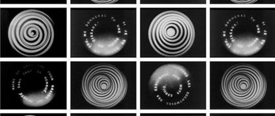 Fernand Léger : Ballet mécanique. L’alternance rapide du cercle et du triangle, du chapeau et de la chaussure, produit une image mentale non impressionnée sur la pellicule : un mixte de cercle et de triangle, une chaussure ronde et un chapeau rectangle. À noter : les contrastes ne sont pas seulement produits par la confrontation de deux objets différents, mais aussi par la présentation d’un même objet (ou plutôt d’une même image) dans des positions différentes : triangle pointe en haut puis pointe en bas, nœud du chapeau à droite puis à gauche. (PdH)