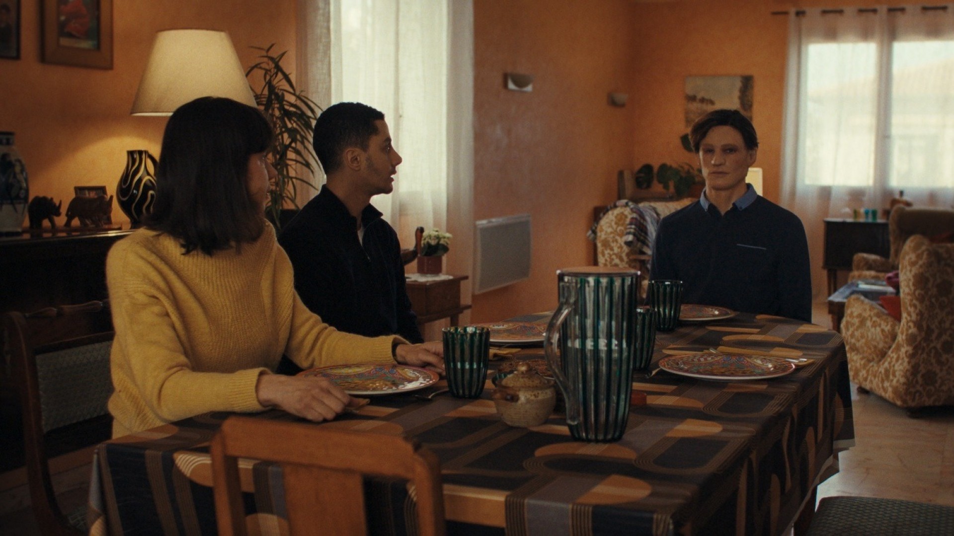 Hakim Atoui s’amuse de toute évidence avec cette tragi-comédie savoureuse et trash qui hybride les humeurs et les tons. Soit un déjeuner de famille. Une trinité cellulaire réunie – une mère, sa fille et son fils – et soudain révolutionnée par la présence d’un assistant médical pas comme les autres. Un safety robot contemporain, mais pas dernier cri, comme le dit la mater familias. D’où les dérapages incontrôlés et progressivement incontrôlables. La critique de la dérive possible de la toute-puissance technologique se double d’une immersion dans le cinéma de genre. Le réalisateur aime le glissement vers l’étrangeté. Dans son film suivant, Adieu soleil, c’est une éclipse solaire qui devient permanente et plonge le monde dans la pénombre. Il peut ainsi observer les comportements humains confrontés à l’inattendu et à leur propre dénuement. Que faire face au non maîtrisable ? Les protagonistes vont devoir agir en situation d’urgence totale, en mode survie, alors que leur repas a démarré en mode ironique, pour continuer par la note acerbe, avant de virer au règlement de comptes à la Festen.