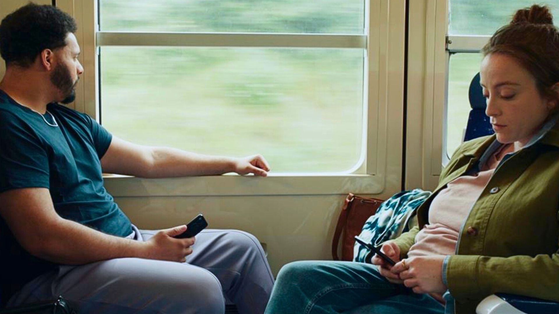 Gemma et Joël vont partager, le temps d’un voyage ferroviaire, un espace d’abord, celui du carré où leurs sièges sont réservés ; une intimité amicale, ensuite, facilitée par les aléas du (dys)fonctionnement de la SNCF, surtout au sein de la fameuse “diagonale du vide”. Pas de revendication, néanmoins, dans ce buddy movie en forme d’impromptu, où une opposition initiale évolue vers une complicité, avec de la drôlerie et même un poil de tendresse, sans en rajouter sur le message de la possibilité du “vivre-ensemble” (selon l’expression consacrée, si souvent galvaudée), ce qu’un tube du groupe Niagara vieux de quarante ans – l’imparable Quand la ville dort – peut, repris en chœur avec une automobiliste détendue, suffire à esquisser. Un parfum de feel good movie s’exhale, dopé par l’attachante complémentarité d’Allison Chassagne, qui continue de se faire un prénom (1), et de Rachid Guellaz, vu (entre autres) l’année dernière dans le second long métrage de Giovanni Aloi, Le domaine. C’est tout simple, mais dans le contexte hexagonal dangereusement inflammable du milieu des années 2020, c’est déjà beaucoup.